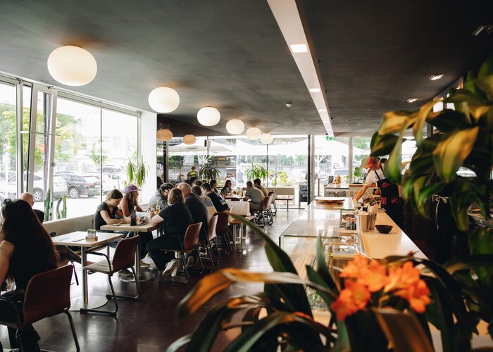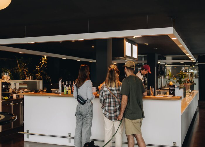 Und dafür braucht es natürlich auch den passenden Rahmen: Statt dem nüchternen Ambiente einer ehemaligen Bäckereifiliale erwartet die Besucher nun ein grauschwarzer Genusstempel.