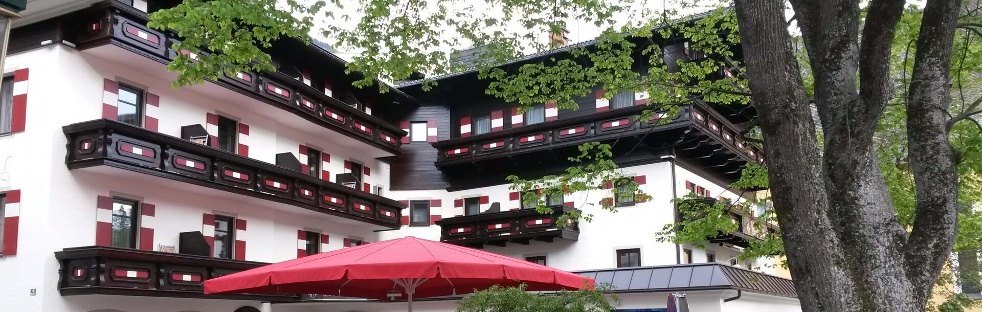 Das Kur- und Sporthotel Winkler direkt neben der Kirche ist heute kaum wiederzuerkennen. Noch im Frühjahr prangten leicht verwitterte Holzbalkone vor einer Fassade in mattem Minzgrün. Doch für die Sommersaison erstrahlte das Gebäude bereits in neuem Glanz. Den passenden Holzschutz steuerte der ADLER Farbenmeister Franz Kreuzthaler bei – und traf dabei genau den richtigen Ton: „Wir haben für die Holzbalkone und Verschalungen aus derPullex Plus Lasur und dem deckenden Pullex Color von ADLER einen dunkelbraunen Anstrich gemischt“, schildert Bettina Kreuzthaler. Dann ging es für die Mitarbeiter der zugehörigen Malerei ans sorgfältige Streichen von vielen, vielen Quadratmetern. Doch die Mühe hat sich gelohnt: Mit ihrem satten Dunkelbraun bringen die Holzteile die frisch weiß gestrichene Fassade und die in patriotischem Rot-Weiß-Rot gehaltenen Fensterläden besonders gut zur Geltung. Alles wirkt neu, elegant, stilvoll, edel. Wie man es sich von einem Traditionshaus in einem Traditionsort erwartet!