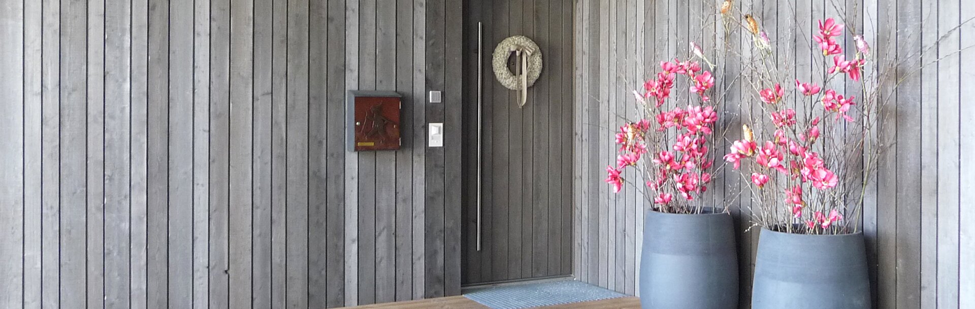 Auch der Blick aus der Bergwelt in die andere Richtung – auf Haus und Hang – ist stimmig. Das Gebäude ist zwar modern, aber knüpft dennoch an die Tradition alpiner Bauweise an. Außen wurde das Haus mit einer Fassade aus sägerauem Lärchenholz in unterschiedlichen Brettbreiten und Nut-Feder-Verbindung mit Schattenfuge gestaltet. Der Familienbetrieb Holzbau Gläser hat die Fassade gefertigt und bereits vor der Montage beschichtet. Aussehen sollte alles natürlich und alpin, das Holz aber trotzdem bestmöglich vor den starken Witterungseinflüssen geschützt sein. Also fiel die Wahl auf die effektvolle Vorvergrauungslasur Pullex Silverwood im Farbton Graualuminium. Die Lasur dringt ins Holz ein, schützt es, lässt es aber trotzdem wie unbeschichtet aussehen. Stattdessen sorgt sie für eine gleichmäßige, silbrige Vergrauung, die an einen schönen Heustadel aus dem Gebirge erinnert. So verschmelzen moderne Gestaltung und optische Tradition zu einem neuen Ausdruck und machen das Haus im Hang zu einem steilen Hingucker.