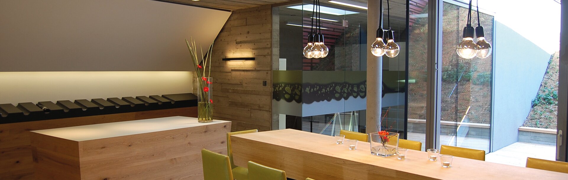 Für die stimmige Einrichtung zeichnete Innenarchitekt Rainer Schmircher verantwortlich, der auf Kompetenz und Können der Schmircher GmbH mit einer Tischlerei in Kleinriedenthal und einem Design-Möbelstudio in Hollabrunn zurückgreifen konnte. Die Tische, Bänke und Schränke sind ebenfalls mit ADLER Pigmopur Weiß und ADLER Pigmotop sowie ADLER Legno-Öl veredelt. An ihnen lässt sich entspannt das eine oder andere Glaserl genießen. Bleibt nur noch die Frage: Rot oder Weiß?