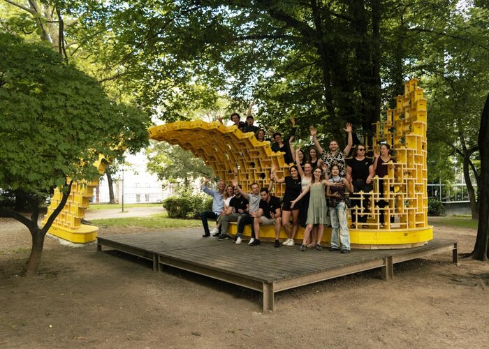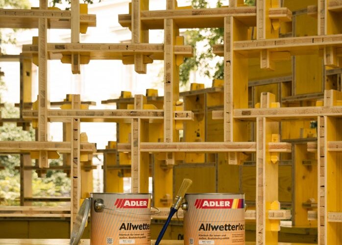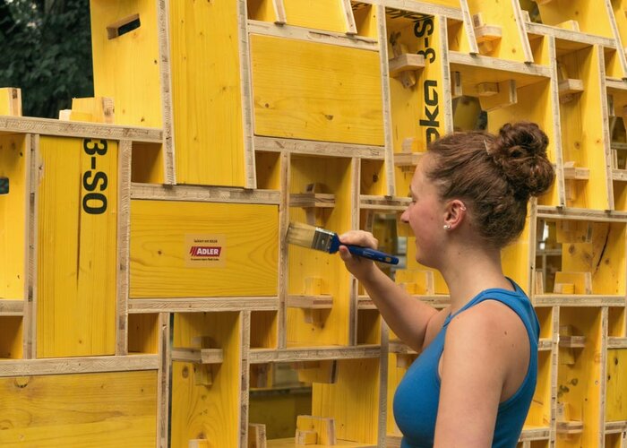 Im Rahmen des Masterstudios im Sommersemester 2024 widmeten sie sich der Herausforderung, „das tiefe und oft schmerzhafte Gefühl der Einsamkeit in eine monumentale Form zu übersetzen“. Das „Monument to Loneliness“ soll ein Ort des Nachdenkens und der Begegnung sein, der die Facetten der Einsamkeit architektonisch erlebbar macht. Die Teile wurden aus gelben Schalungstafeln gefräst. Um längere Haltbarkeit zu garantieren, mussten die Kanten beschichtet werden – ADLER stellte dafür Allwetterlack zur Verfügung.