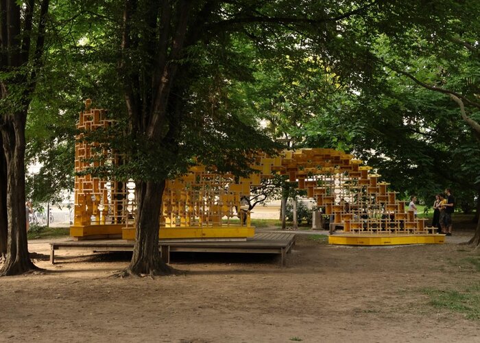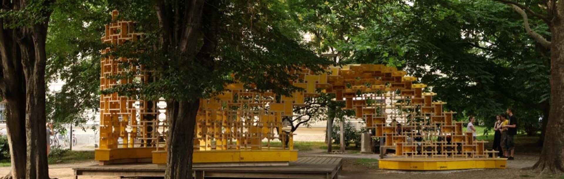 Eine eindrucksvolle Skulptur in Form eines Möbiusbandes haben Studierende des Institut für Architektur und Medien (IAM) an der TU Graz im Park der Alten Technik in Graz errichtet.