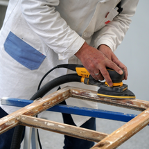 Durch einen Zwischenschliff mit Körnung 240 gleichen Sie Unebenheiten aus und sorgen für eine bessere Haftung der Schlussbeschichtung.