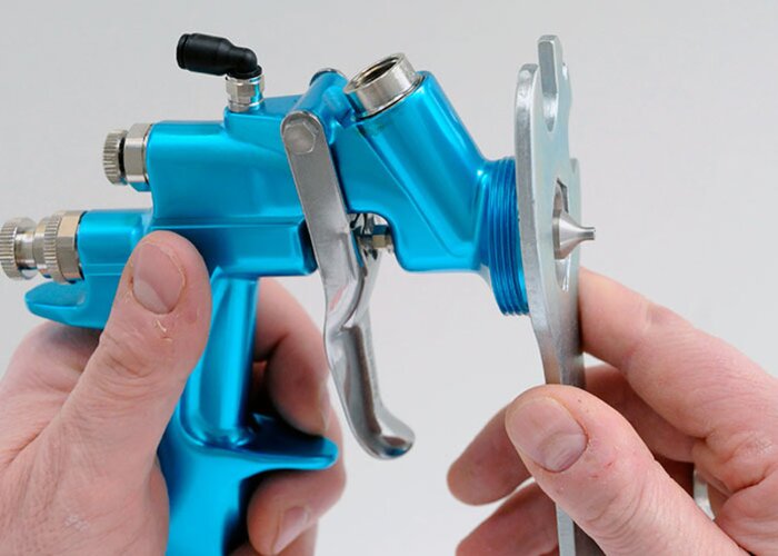 Anschließend können Sie die Lackierpistole wieder zusammenbauen. Kontrollieren Sie aber anschließend das Spritzbild.