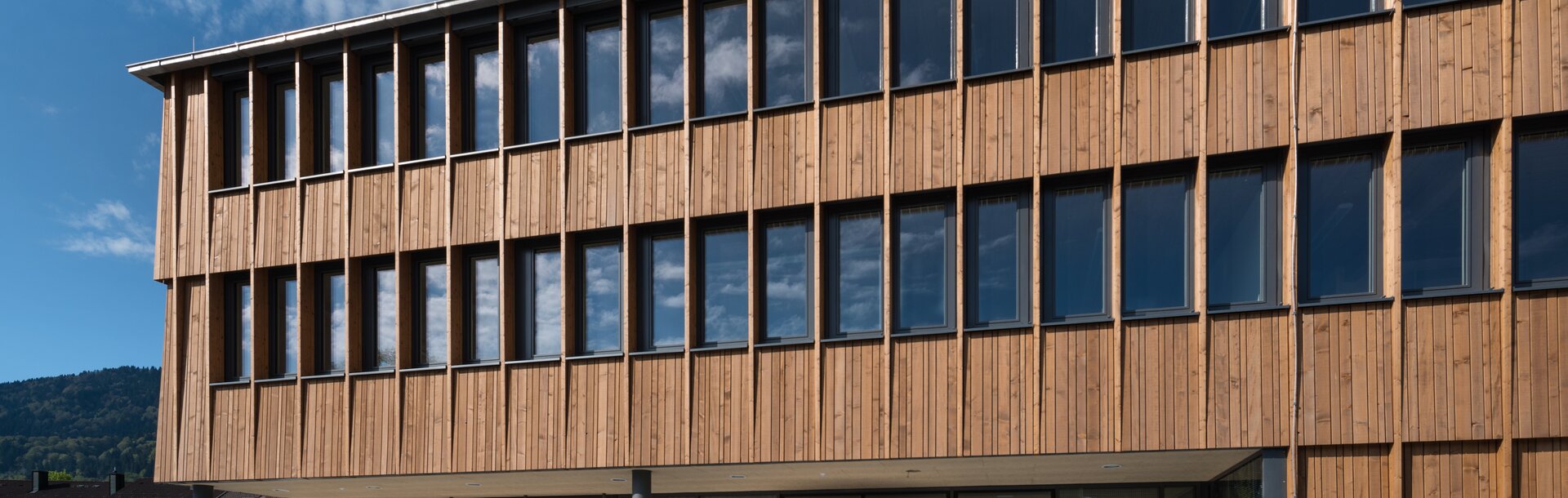 Wärme und Eleganz strahlt das „Grüne Zentrum Immenstadt“ mit seiner Holzfassade aus.