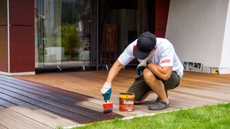 Molte pitture e vernici per legno esterno contengono i cosiddetti conservanti del legno. Queste sostanze attive impediscono che il legno venga attaccato e distrutto da organismi nocivi come funghi, alghe o insetti. I prodotti per la protezione del legno Pullex di ADLER utilizzano solo principi attivi moderni in dosi ridotte che funzionano in modo affidabile, ma non rappresentano un pericolo per l'uomo, gli animali o l'ambiente. Questo crea un perfetto equilibrio tra durata e protezione dell'ambiente. E per le aree particolarmente sensibili, come le strutture di gioco dei bambini, gli alveari o le cucce dei cani. ADLER offre naturalmente anche prodotti privi di principi attivi, come l'olio ecologico per legno Pullex Aqua-Terra, privo di solventi, plastificanti e conservanti del legno, prodotto a base di materie prime rinnovabili e ideale per l'uso interno ed esterno - e in numerose tonalità di colore!
